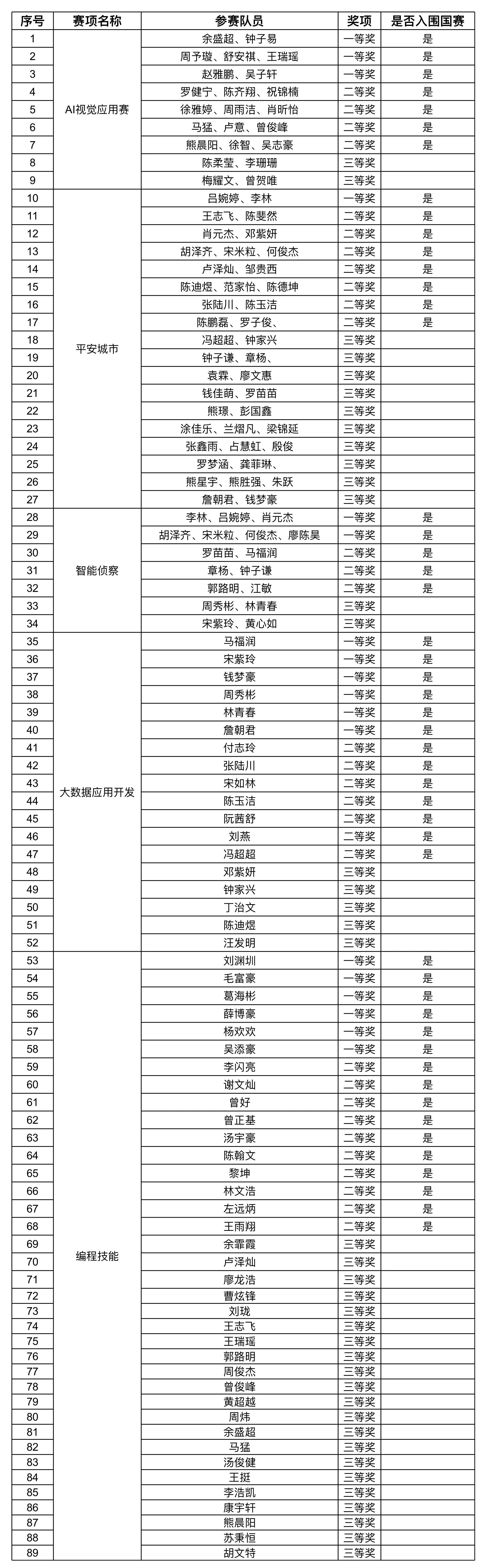 获奖名单